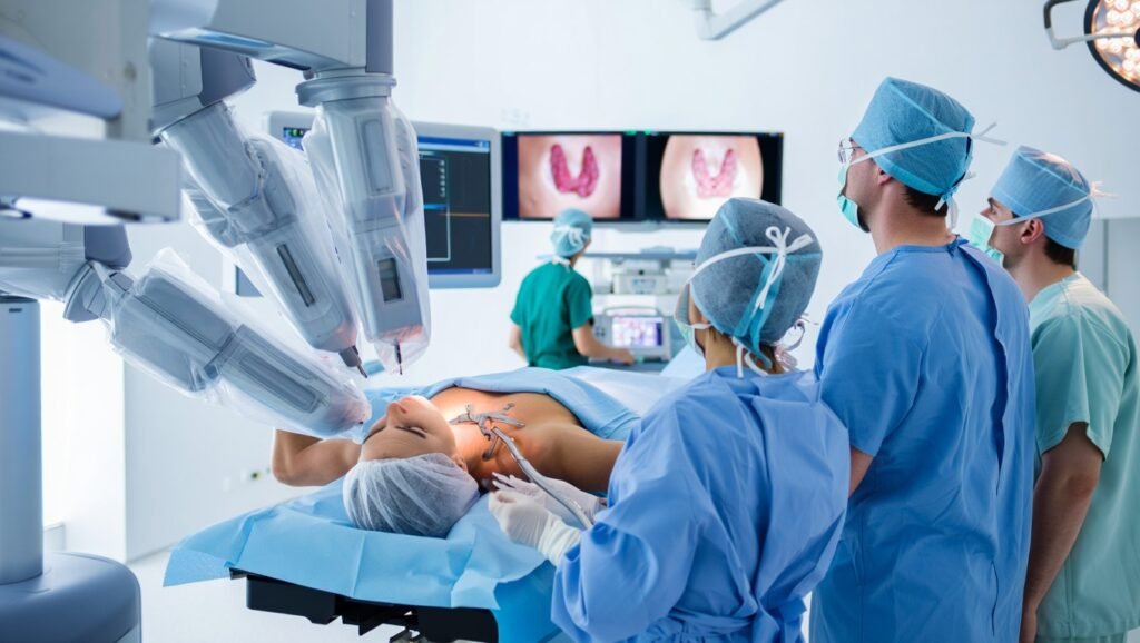 Robotic Thyroidectomy is a minimally invasive surgical technique used to remove all or part of the thyroid gland through a remote incision, often in the armpit, leaving no visible scar on the neck. Dr. Ashwani Kumar has successfully performed numerous Robotic Thyroidectomy procedures, helping patients with thyroid cancers and benign thyroid nodules achieve excellent results with minimal cosmetic concerns. The robotic system provides superior visualization and control, reducing complications and enhancing surgical accuracy. Dr. Ashwani Kumar’s proficiency in robotic techniques enables a scarless and safe approach, preserving important structures such as the recurrent laryngeal nerve and parathyroid glands. His meticulous surgical planning and patient-tailored strategies make Robotic Thyroidectomy a preferred option for patients concerned about scarring and recovery. With a focus on minimizing trauma and improving post-operative outcomes, Dr. Ashwani Kumar ensures each patient receives personalized care throughout the surgical journey. His reputation as an expert in robotic thyroid surgery makes him a sought-after surgeon for complex endocrine procedures.